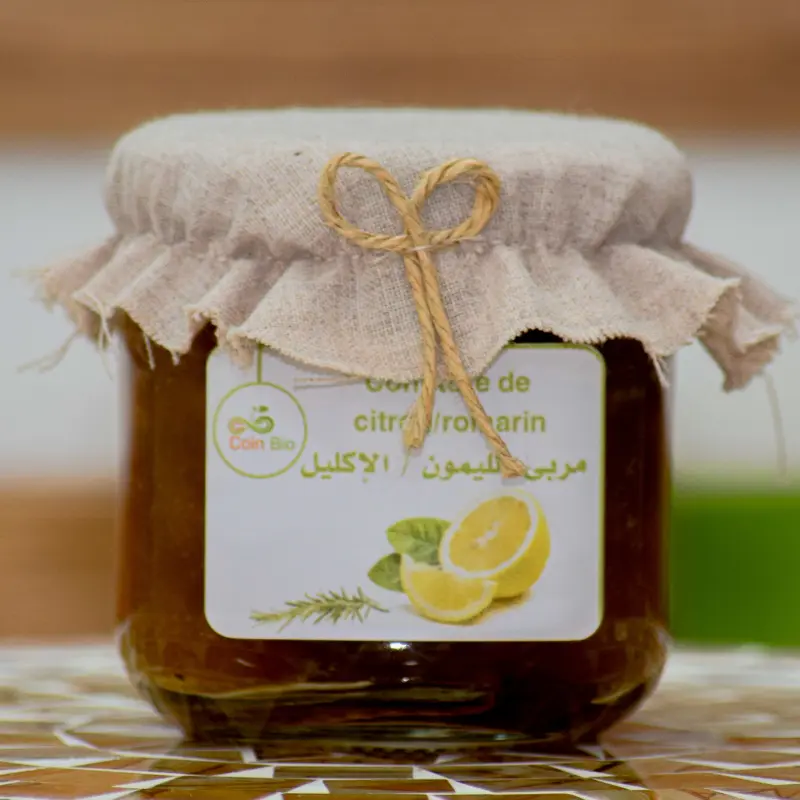 Plongez dans une expérience gustative unique avec la Confiture citron et romarin bio de chez Coin Bio, où l’acidité du citron se marie à la fraîcheur aromatique du romarin pour créer un véritable délice pour les papilles.