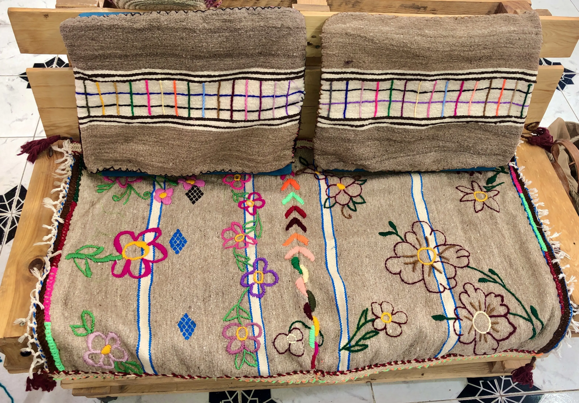 Le jeté de lit traditionnel remonte à des siècles, faisant partie intégrante de diverses cultures à travers le monde. Utilisé à l’origine pour se protéger du froid dans les régions les plus rudes, il est rapidement devenu un symbole de confort et de convivialité. Fabriqué à partir de matériaux naturels tels que “le Margoum”, il incarne le savoir-faire artisanal transmis de génération en génération.